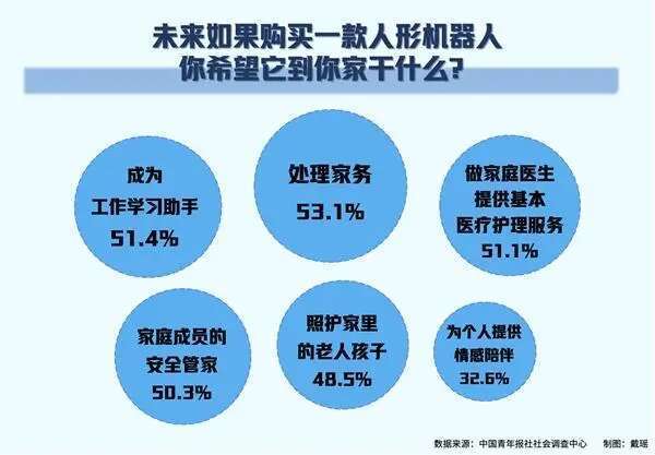 养老、家务、工业制造是受访者期待的人形机器人三大应用领域